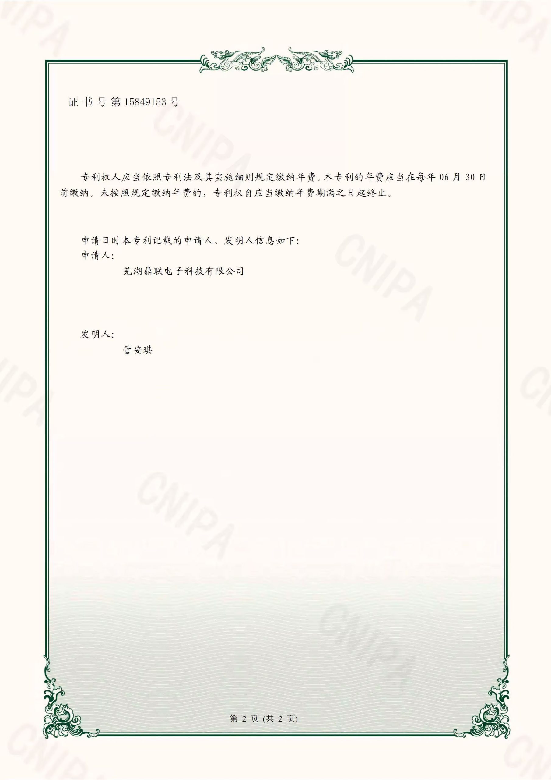 A connecting wire structure for street lamps Certificate number ZL 2021 2 1472919.2 Certificate validity Valid from 06/29/2021