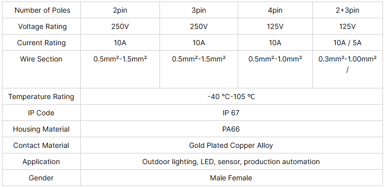 M15 Electrical Waterproof Connectors Male Female PA66 Connector Cable 2 3 4 5 Pin Plug for Lighting 10A Rated Current Copper