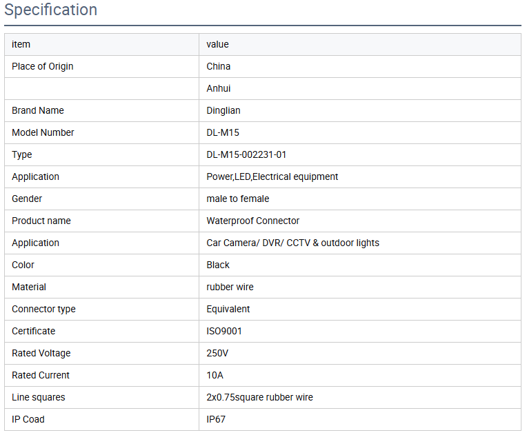 | Product name | Waterproof Connector |