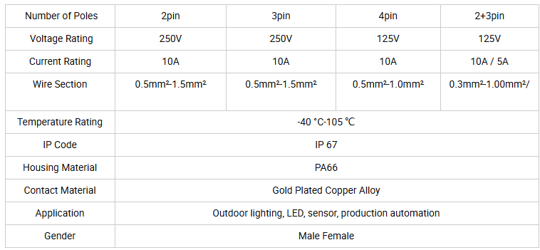 Wires End Buckle M15 IP67 Waterproof Connectors’ Tail Card for Street Lights Outdoor Lighting Customized with Cables 250V 10A